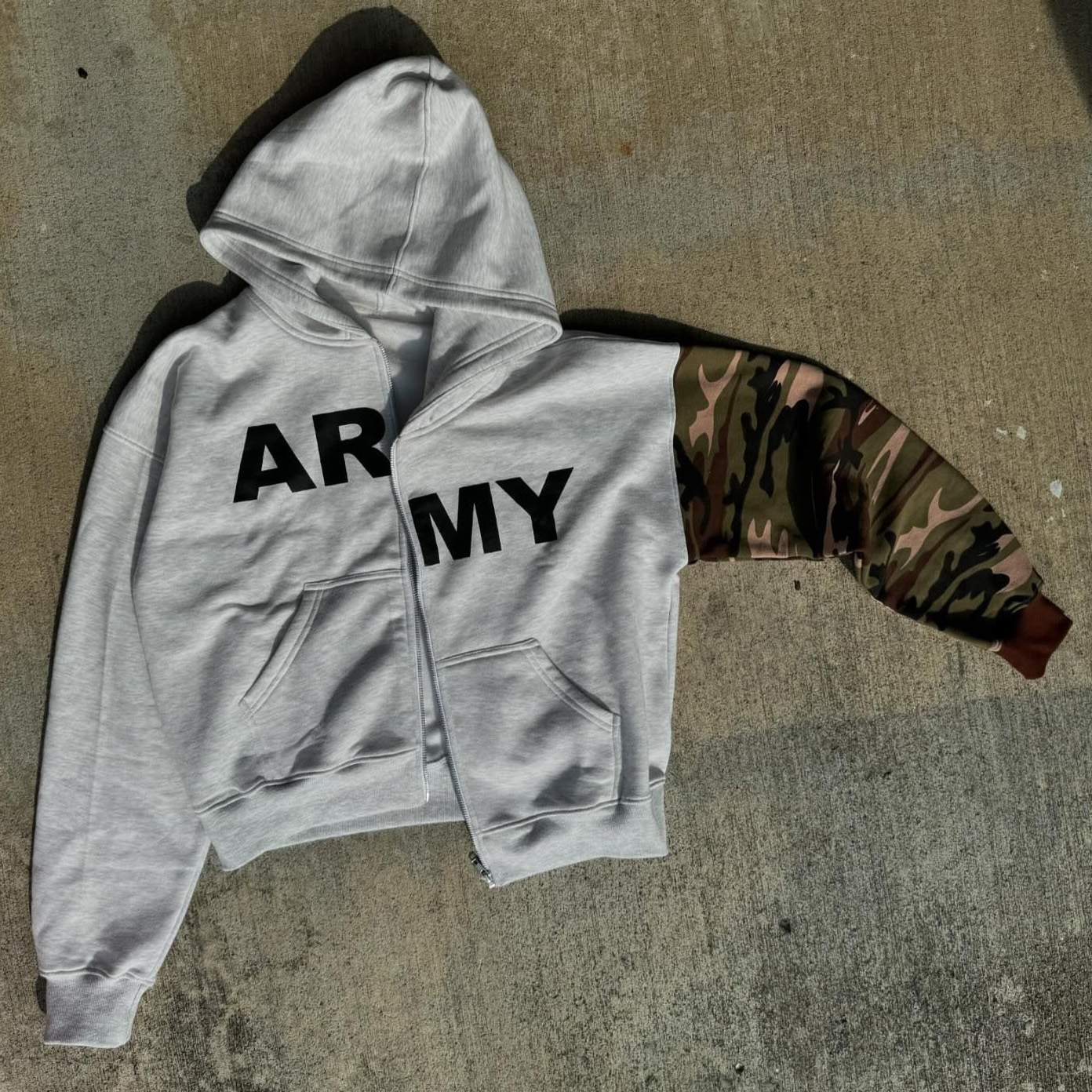 Army Camouflage Print Long Sleeve Zipper Hoodies