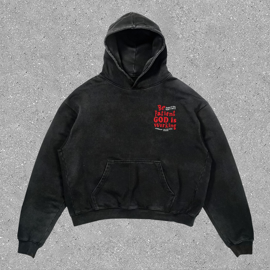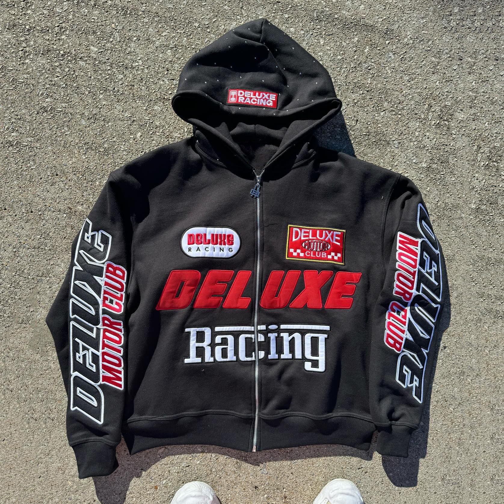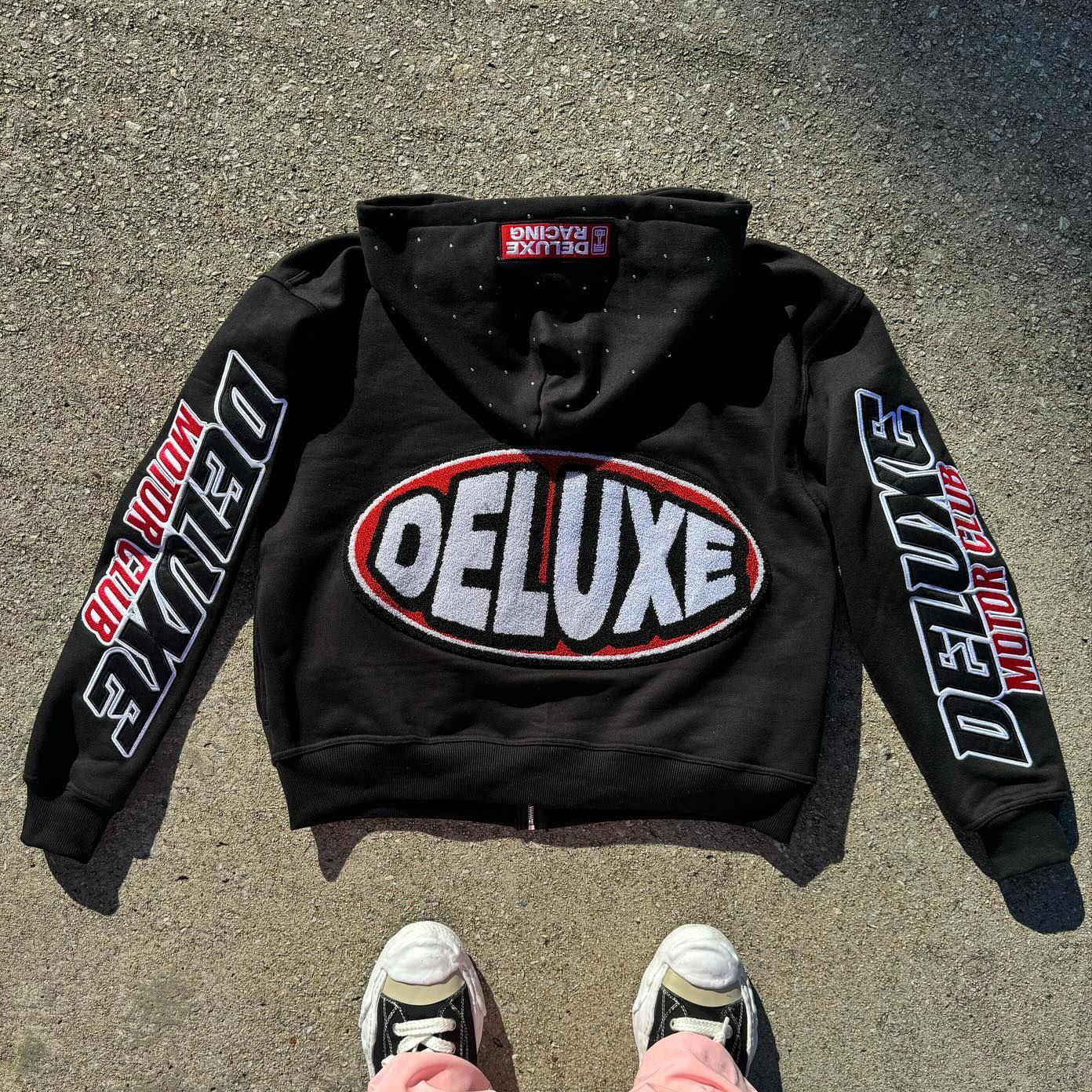 High Street Letter Patch Print Zipper Mask Hood Hoodie
