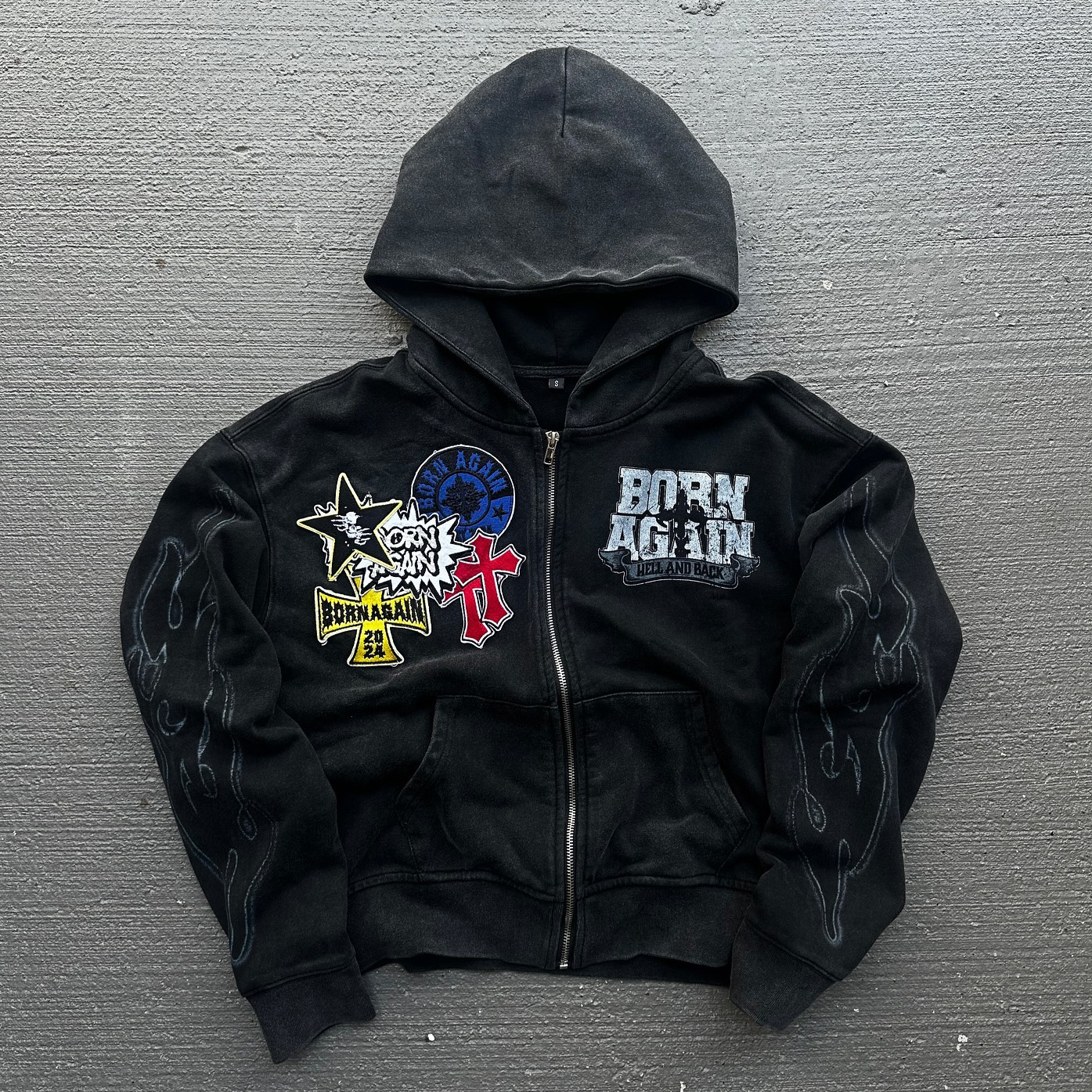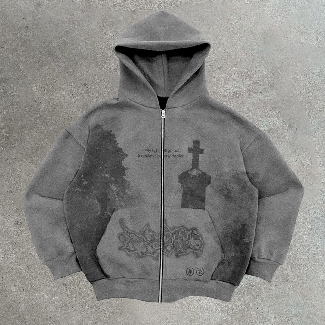 Cross Letters Print Long Sleeve Zipper Hoodies