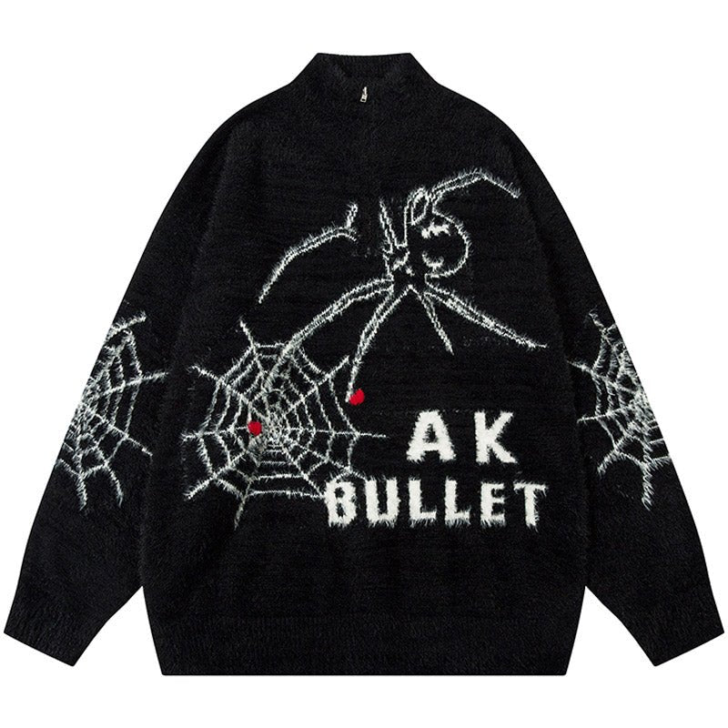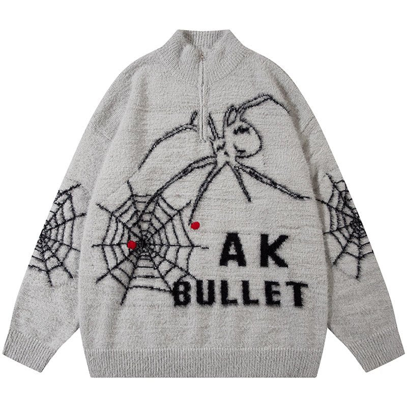 LEMANDIK® Quarter Zipper Knitted Sweater Spider Web
