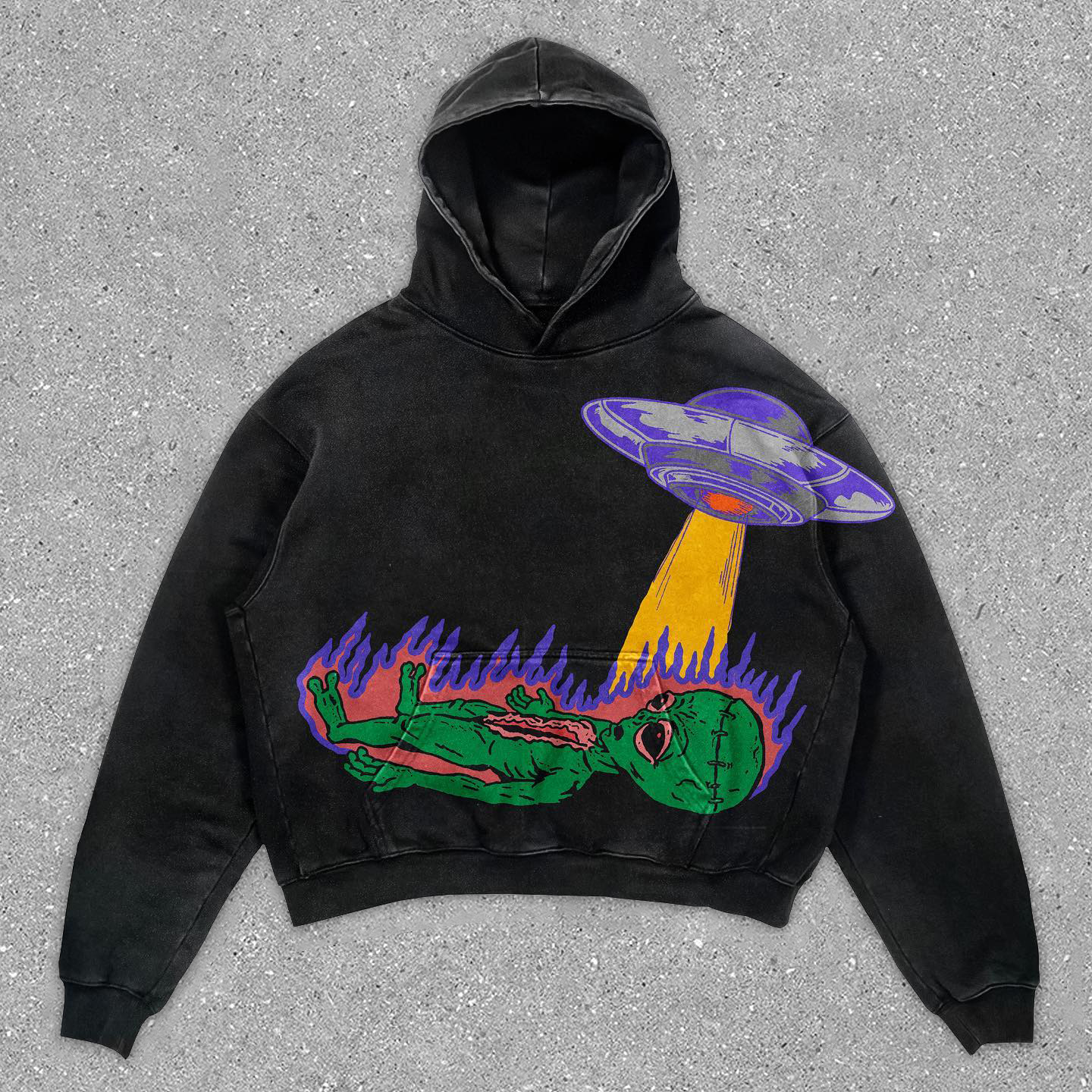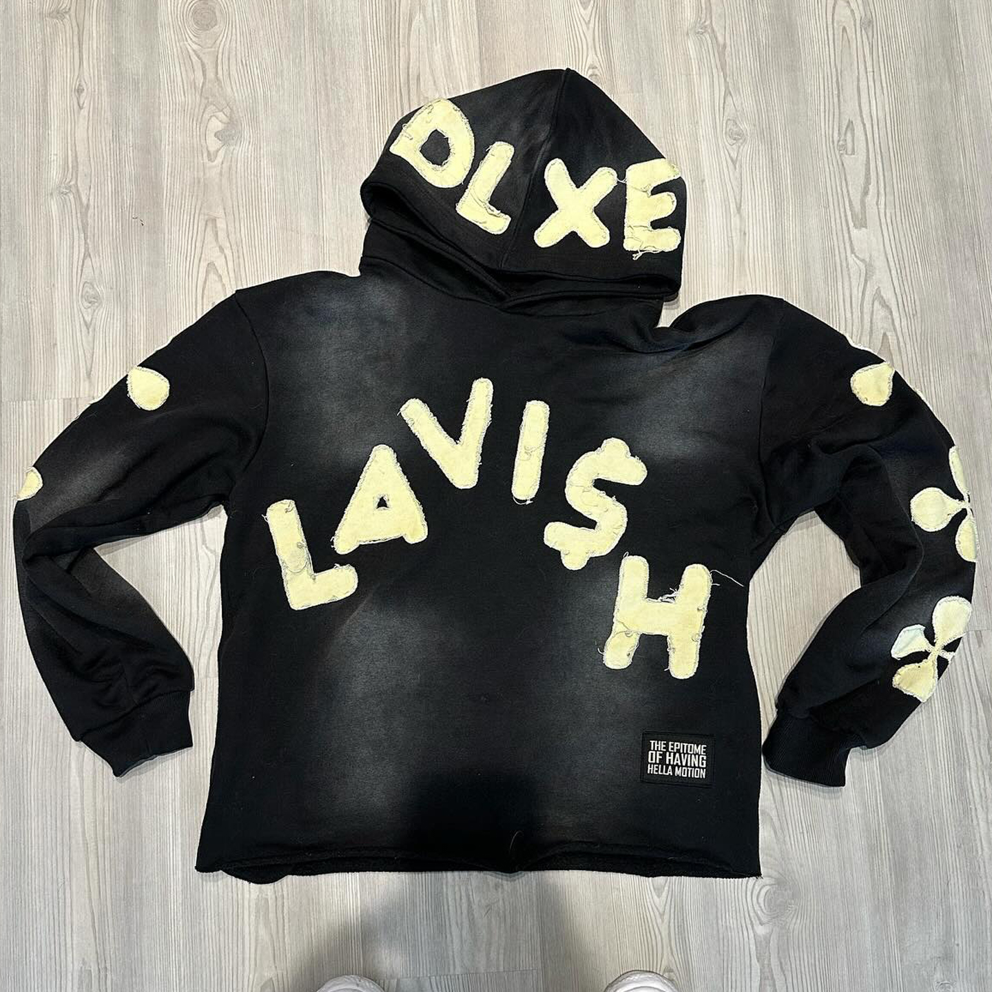 Cracked casual streetwear patchwork washed hoodie