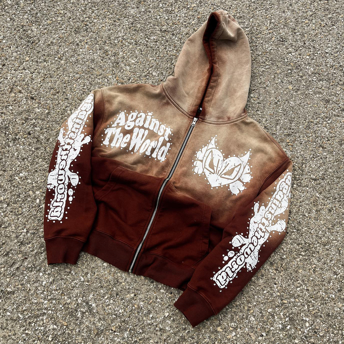 Against the World Casual Street Retro Zip-Up Hoodie