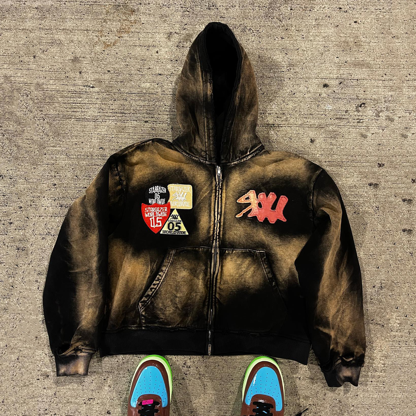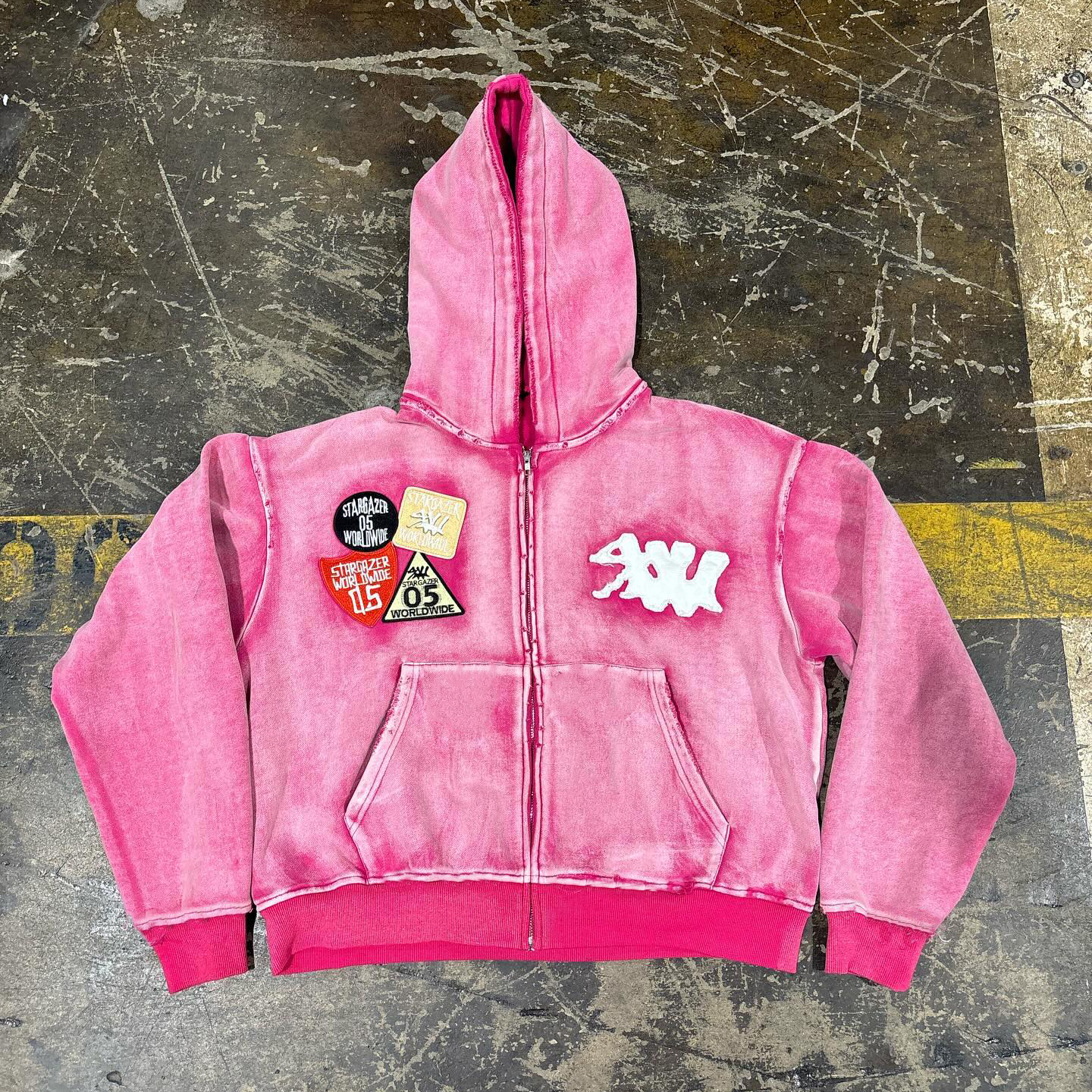 Vintage washed patch zipper hoodie