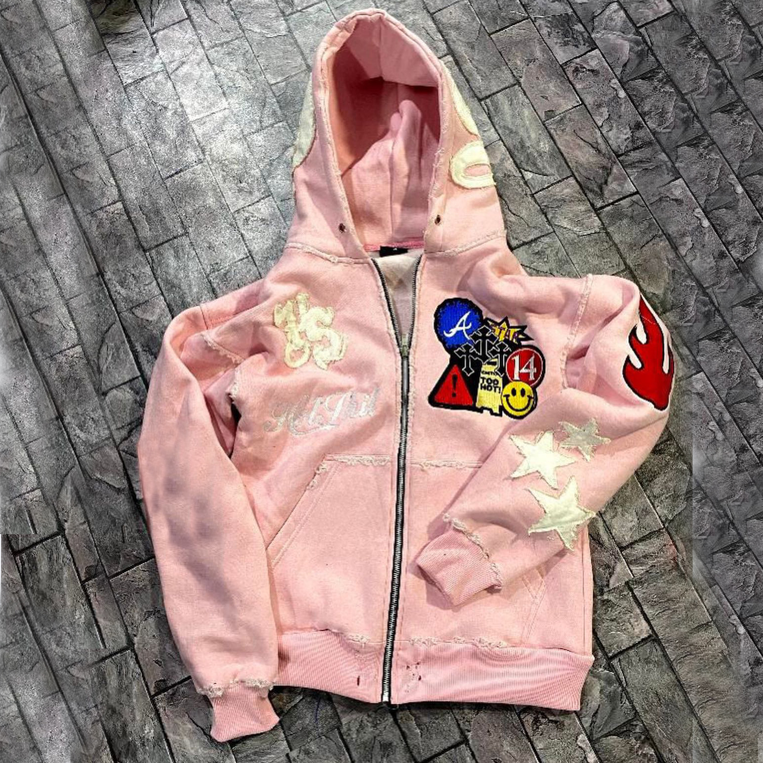 Streetwear Patched Zip-Up Hoodie