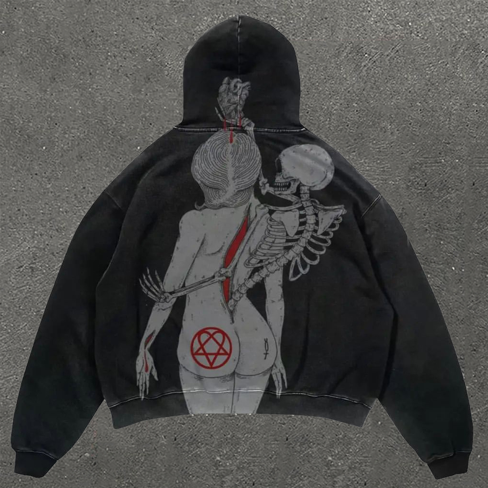Casual Vintage Print Street Hoodie